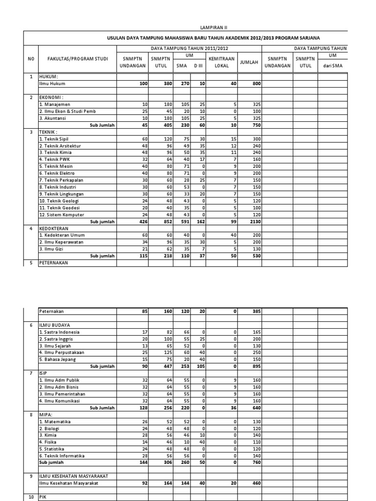 Daya Tampung Undip Thn 2010 Dan Data Snmptn 2009 Kode Program Studi Daya Tampung Peminat Tahun