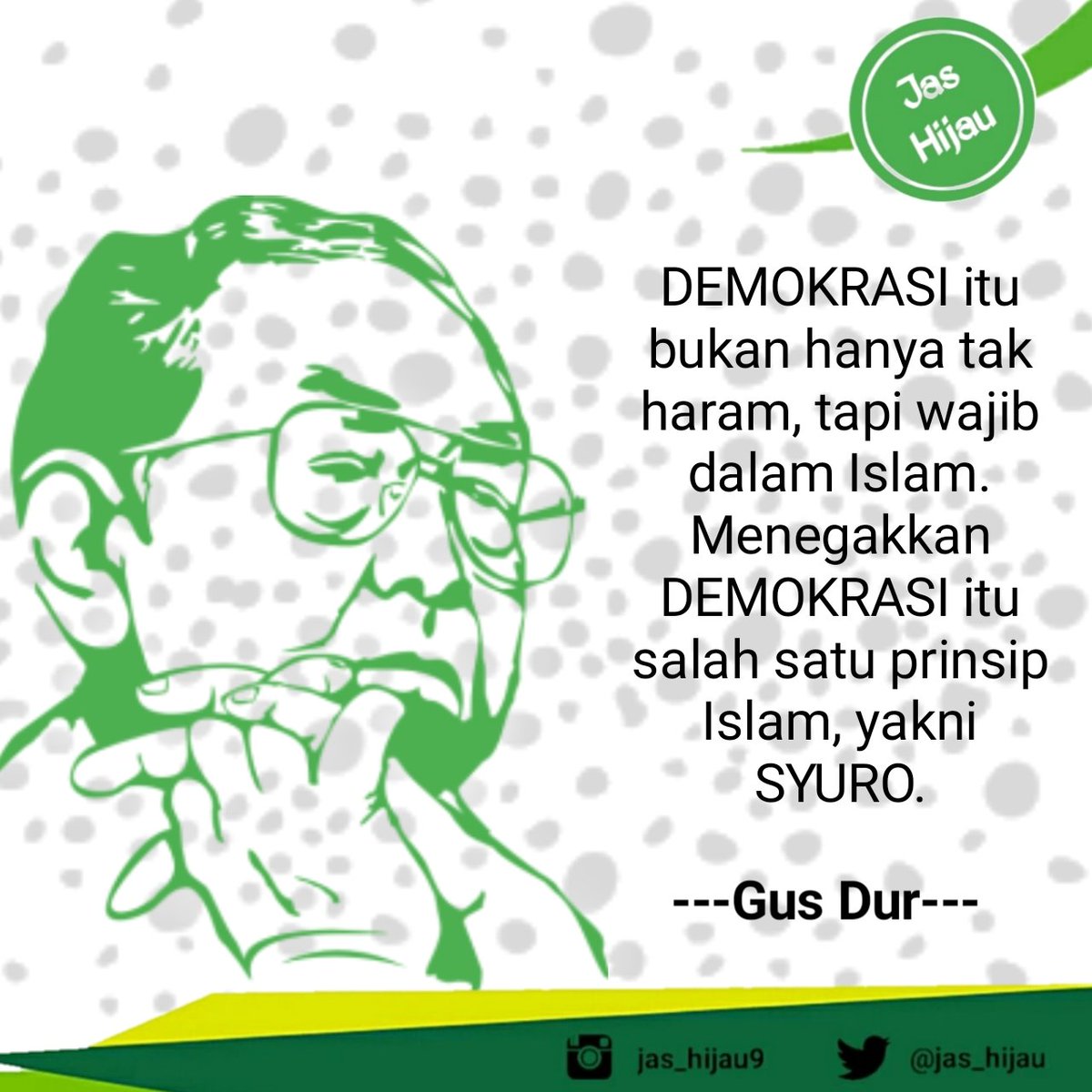 Jas Hijau A Twitter Demokrasi Itu Bukan Hanya Tak Haram Tapi Wajib Dalam Islam Menegakkan Demokrasi Itu Salah Satu Prinsip Islam Yakni Syuro Gus Dur Bapak Demokrasi Indonesia Jashijau Democracyday Democra Haridemokrasiinternasional