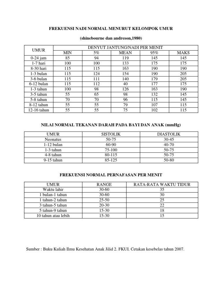 Denyut Nadi Anak Anak Yang Normal Berada Dalam Kis