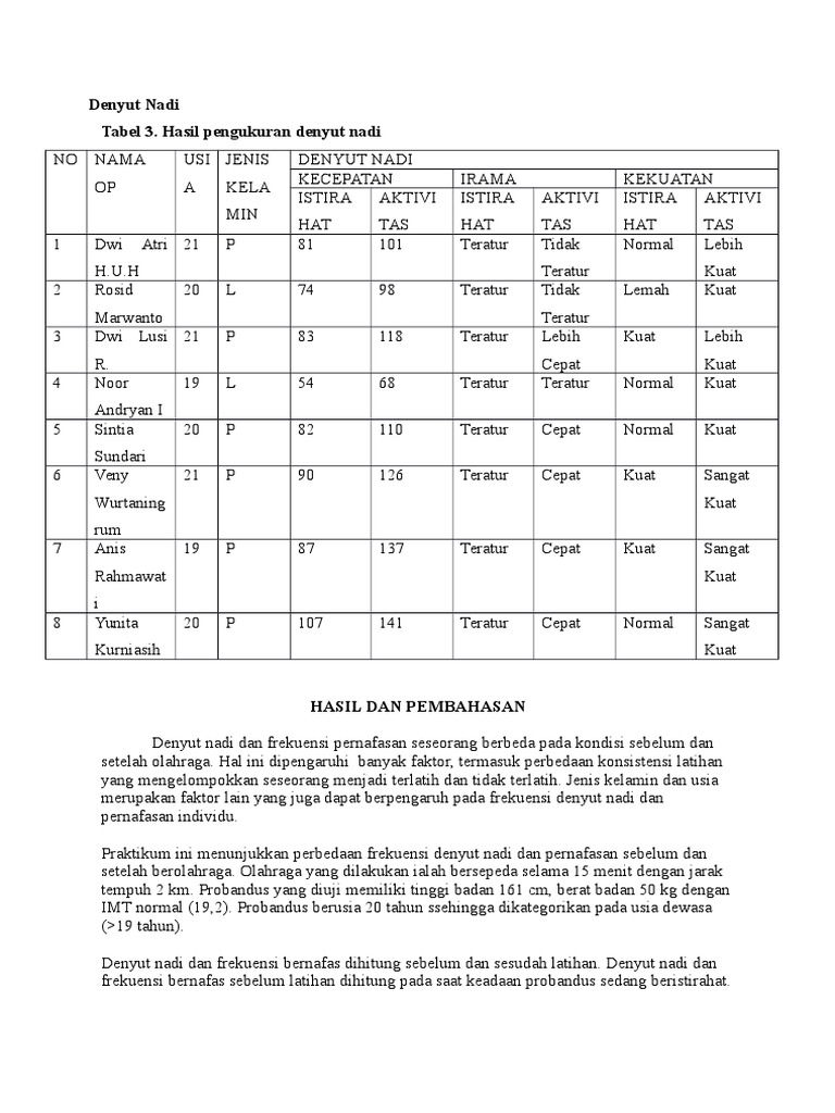Perubahan Denyut Nadi Pada Mahasiswa Setelah Aktivitas Naik Turun Tangga Pdf Download Gratis