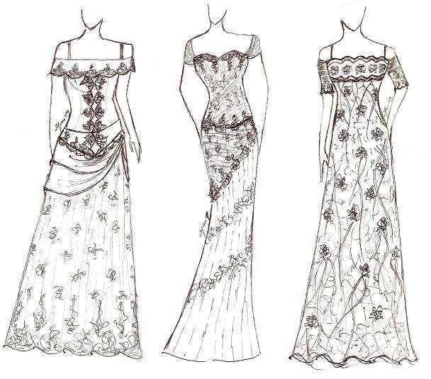 Desain Busana Pesta Sketsa Desain Referensi Gambar