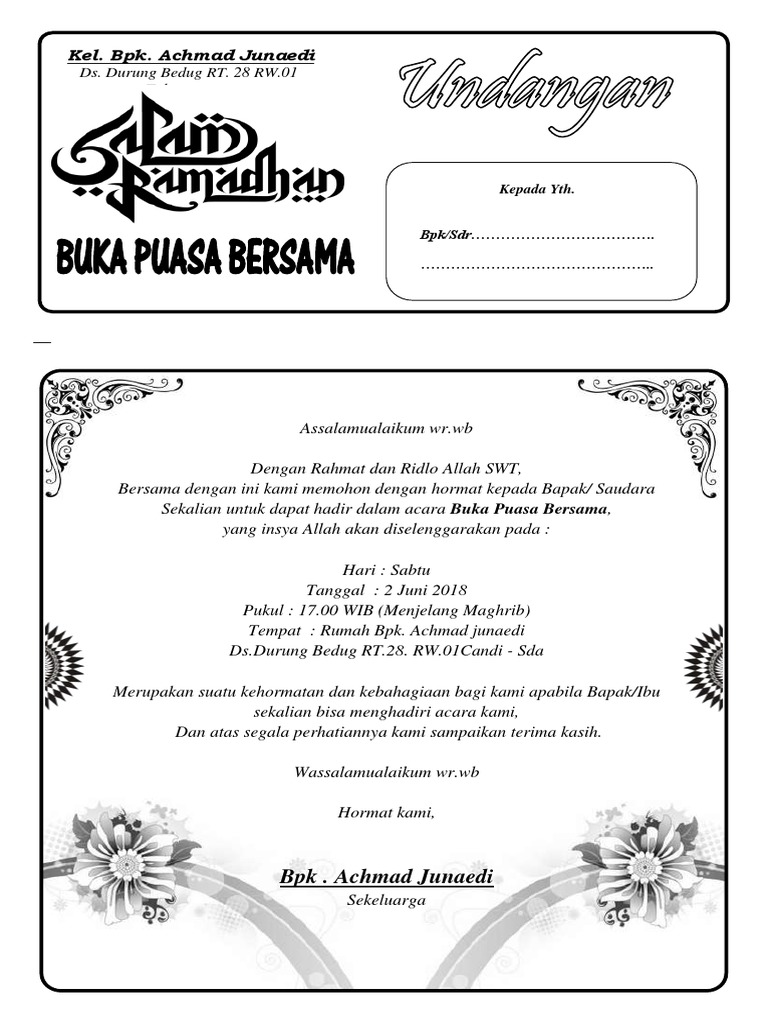 Kumpulan Contoh Undangan Buka Puasa Bersama Alumni Smp Terbaru Informasi Masa Kini