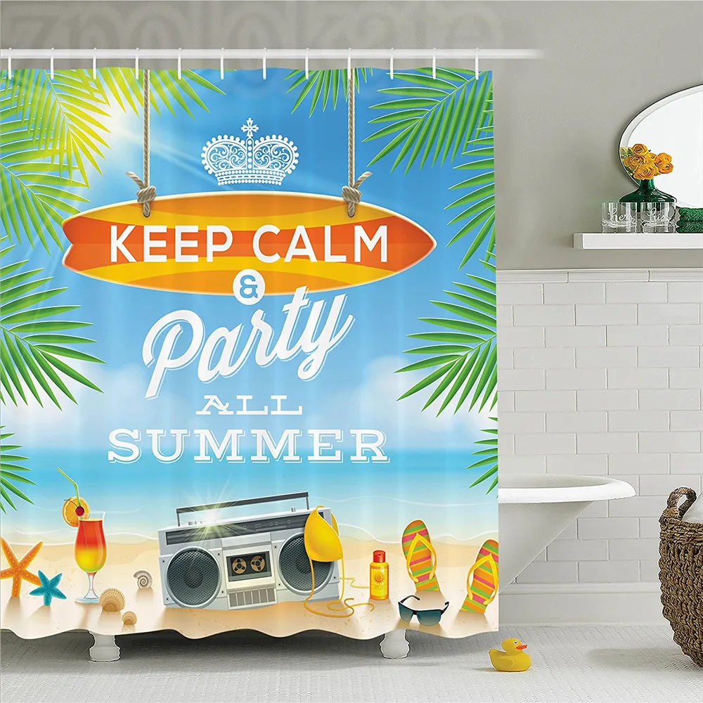 Laut Desain Grafis Dari Lucu Musim Panas Liburan Ucapan Dengan Daun Kelapa Tetap Tenang Tropic Tema Art Print Polyester Shower Curtain Shower Tirai Aliexpress