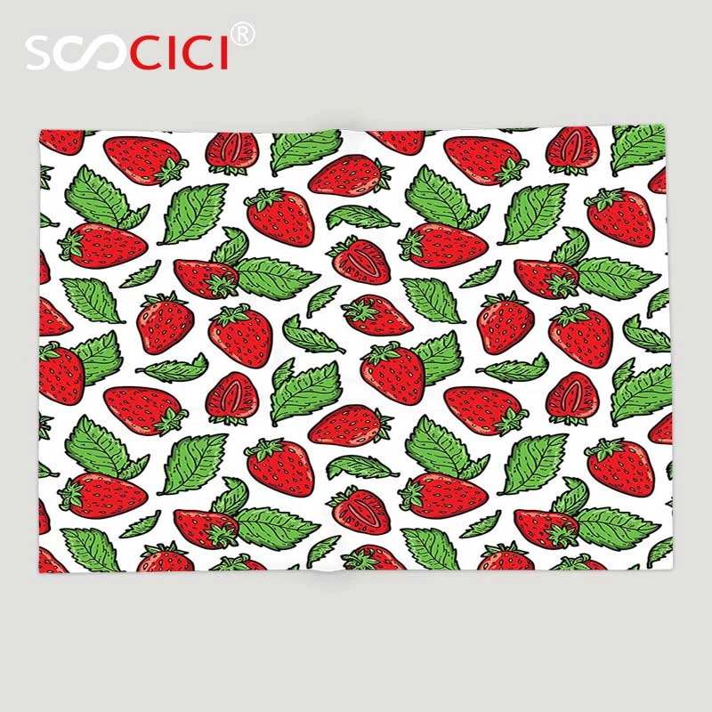 Kustom Lembut Fleece Throw Blanket Berair Lezat Stroberi Dengan Daun Pakis Makanan Organik Charming Desain Grafis Sweets Merah Fleece Throw Blankets Designer Blanketthrow Blanket Aliexpress