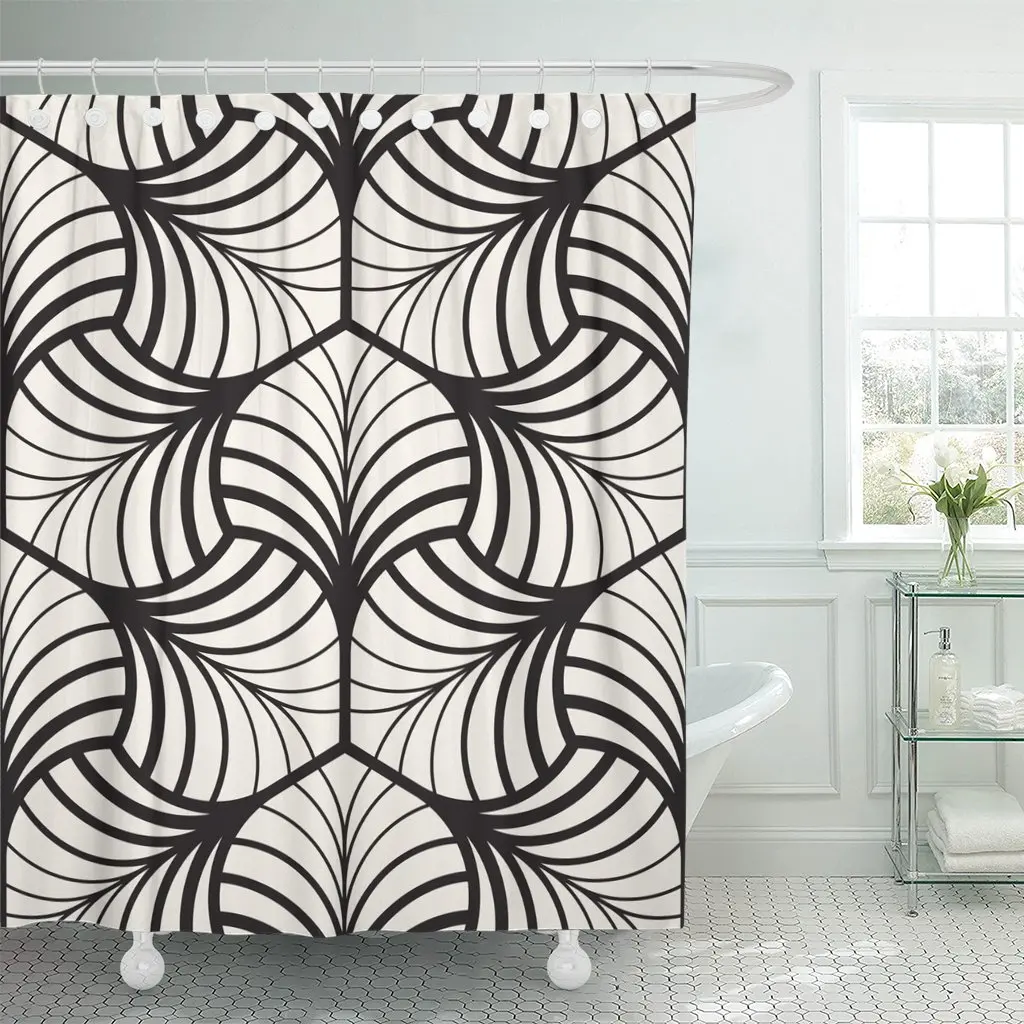 Monokrom Desain Grafis Geometris Daun Biasa Bunga Dengan Elegan Kelopak Bergaya Modern Kamar Mandi Tirai Tahan Air Aliexpress