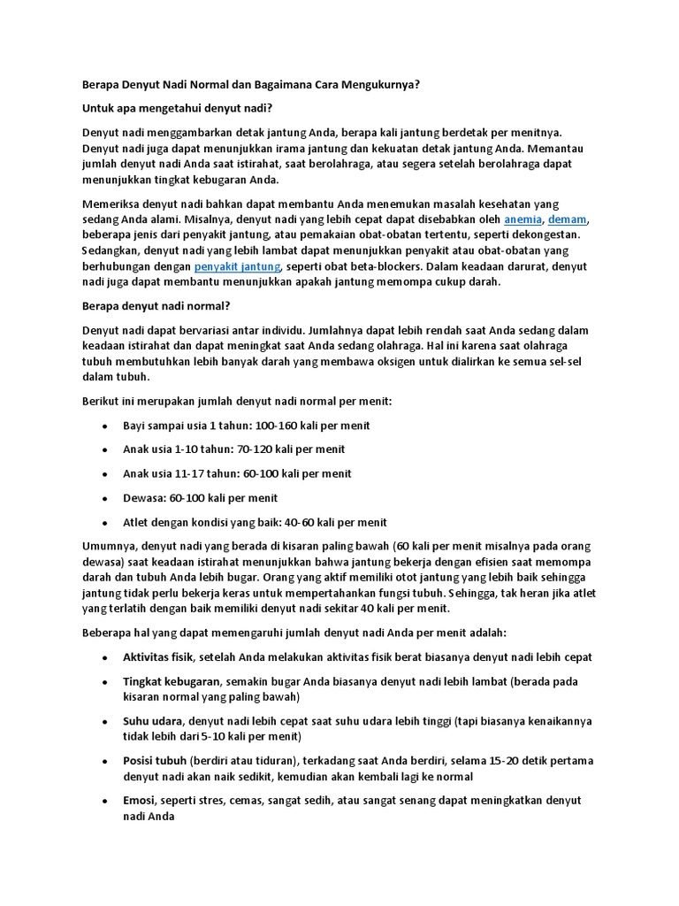 Detak Jantung Normal Berapa Ukuran Denyut Nadi Normal