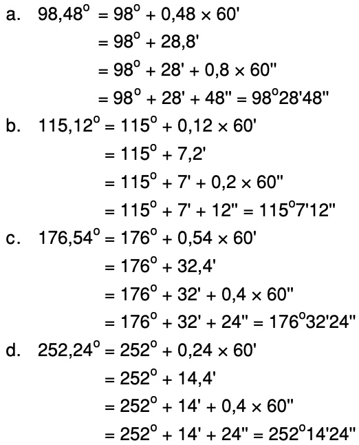 Nyatakan Sudut Sudut Berikut Ke Dalam Bentuk Derajat Menit Dan Detik A 98 48 B 115 12 Mas Dayat