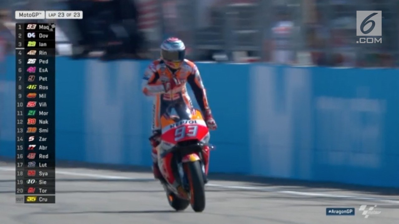 Lewati Valentino Rossi Hingga Lorenzo Ini Video Detik Detik Kemenangan Marquez Di Motogp Aragon 2017 Okezone Sports