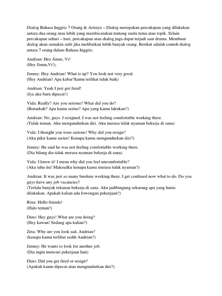 Tolong Juatkan Dialog Bahasa Inggris Untuk 8 Orang Cerita Nya Terserah Brainly Co Id