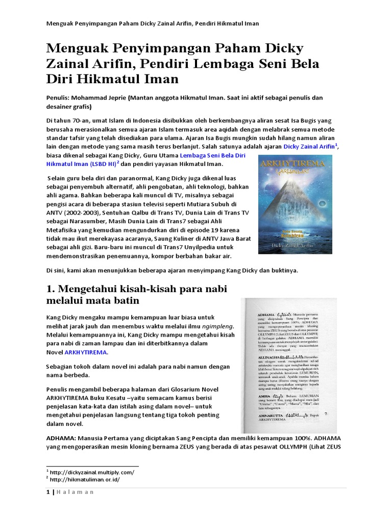 Mengenal Ajaran Sesat Dicky Zainal Arifin Di Lanterha The Lemurian Meditation D H Lembaga Seni Bela Diri Hikmatul Iman Pdf Document