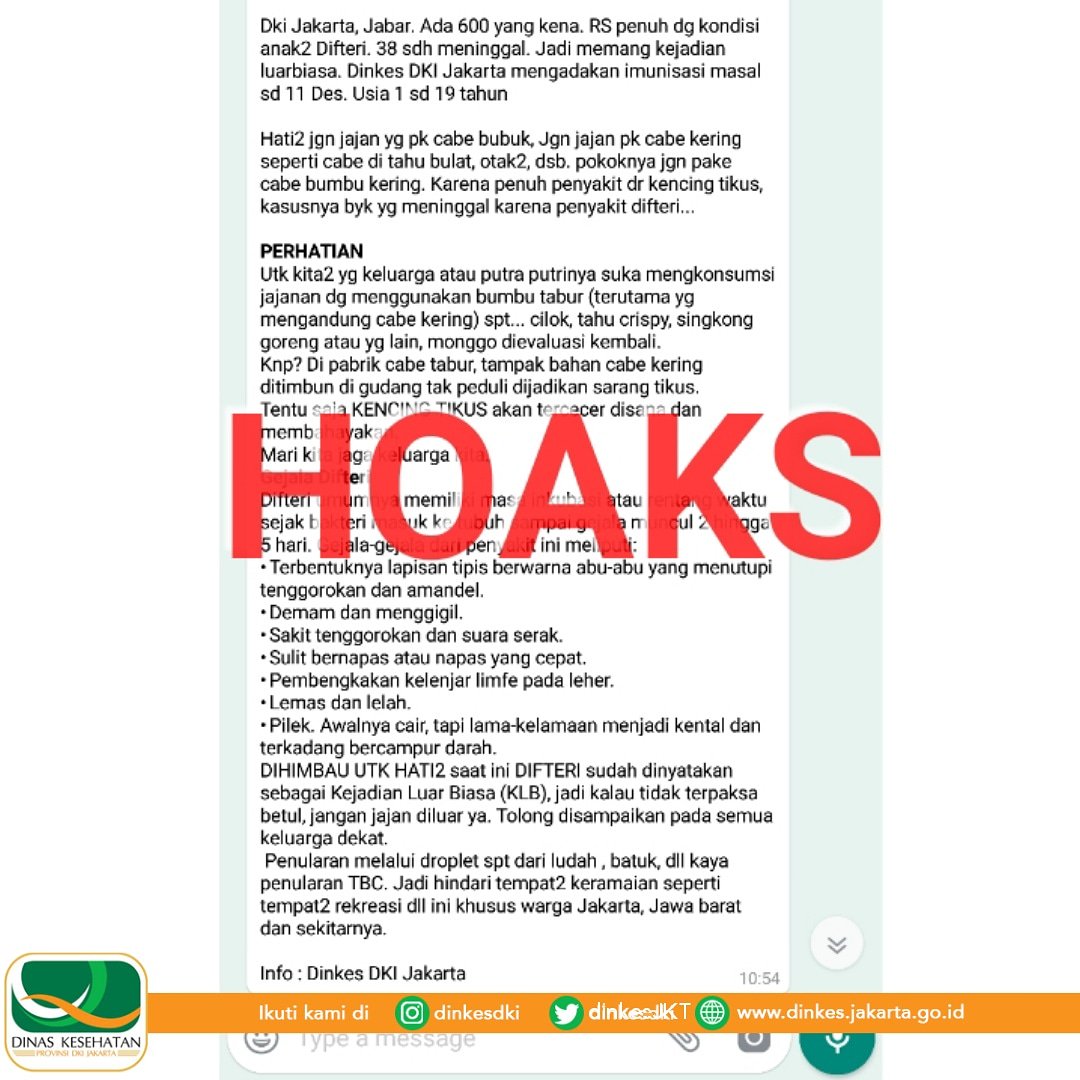 Dinas Kesehatan Provinsi Dki Jakarta On Twitter Informasi Hoaks Jika Bapak Ibu Menerima Informasi Seperti Di Atas Kami Pastikan Informasi Tersebut Hoaks Dan Tidak Berasal Dari Dinas Kesehatan Provinsi Dki Jakarta