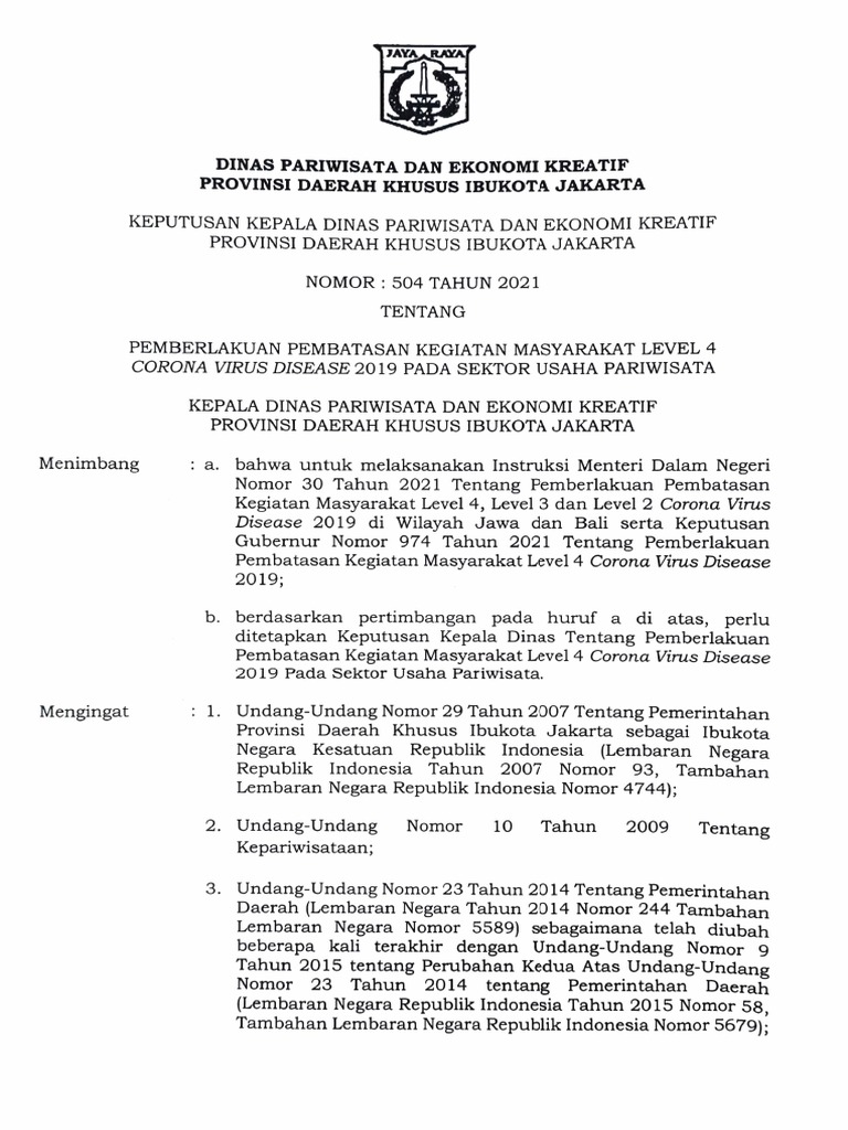 Surat Keputusan Dinas Pariwisata Dan Ekonomi Kreatif Terkait Perpanjangan Psbb Transmisi Labb Co Id