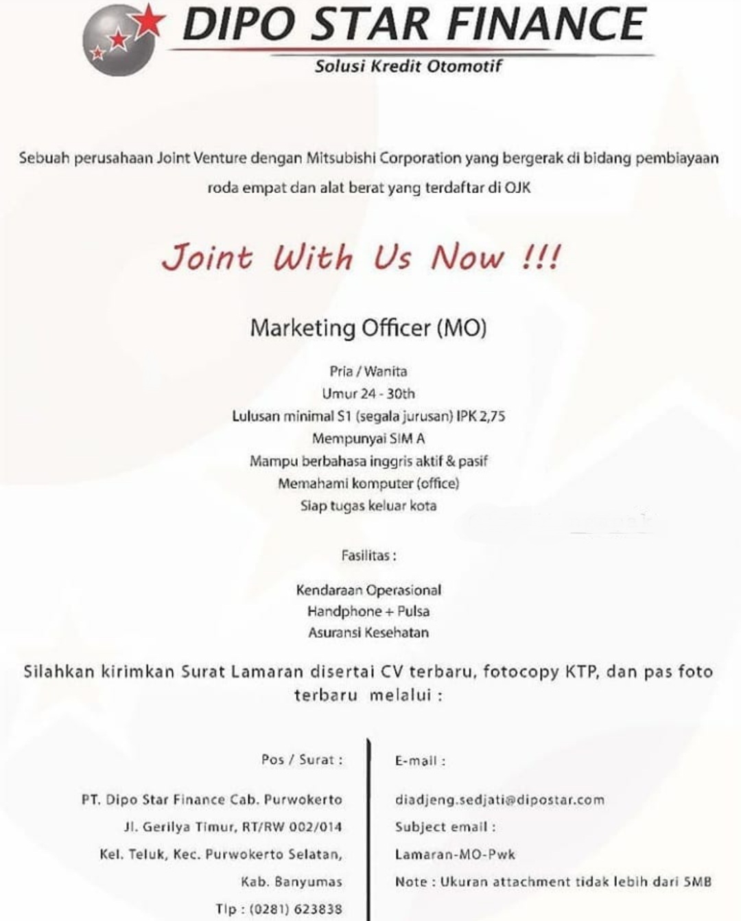 Lowongan Kerja Pt Dipo Star Finance Purwokerto Info Loker Purbalingga
