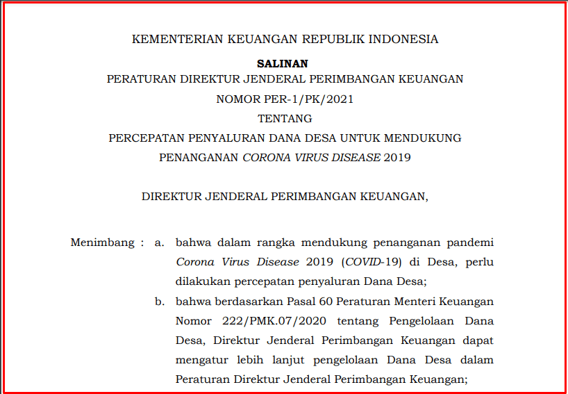 Terbaru Peraturan Direktur Jenderal Perimbangan Keuangan Nomor Per 1 Pk 2021 Tentang Percepatan Penyaluran Dana Desa Untuk Mendukung Penanganan Corona Virus Disease 2019 Media Brita Rakyat