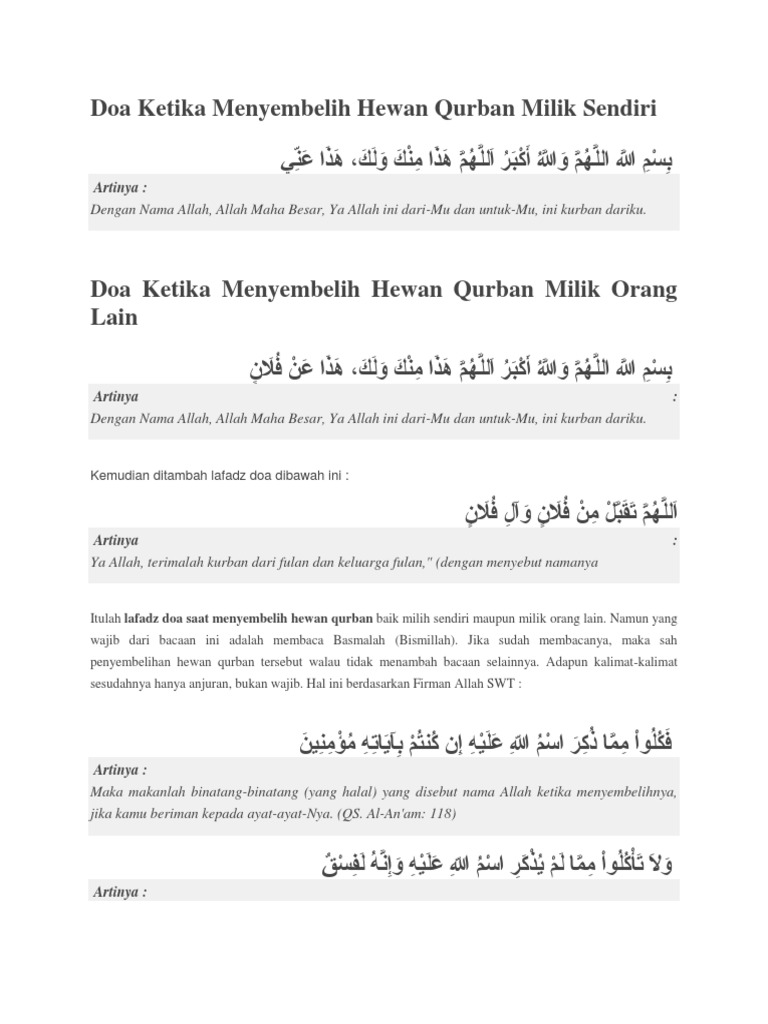 Doa Menyembelih Hewan Qurban Sesuai Sunnah Arab Latin Dan Artinya Fiqihmuslim Com