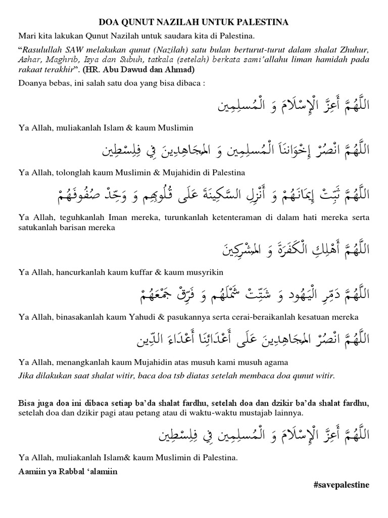 Doa Untuk Palestina Doa Qunut Nazilah Bacaan Latin Dan Artinya