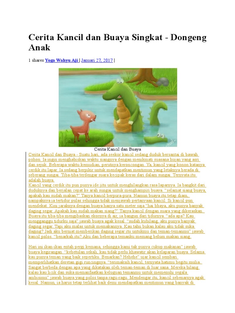 Contoh Cerpen Fabel Berjudul Kisah Dongeng Kancil Dan Buaya Indolinear Com