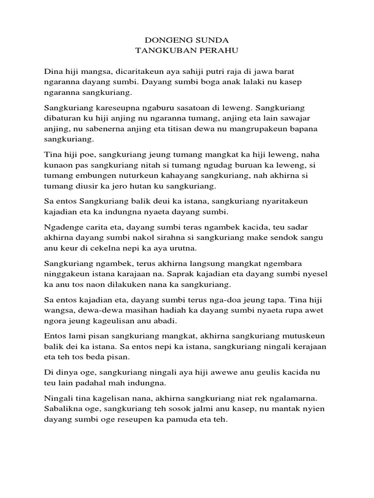 Dongeng Tangkuban Perahu Singkat Bahasa Sunda Perangkat Sekolah