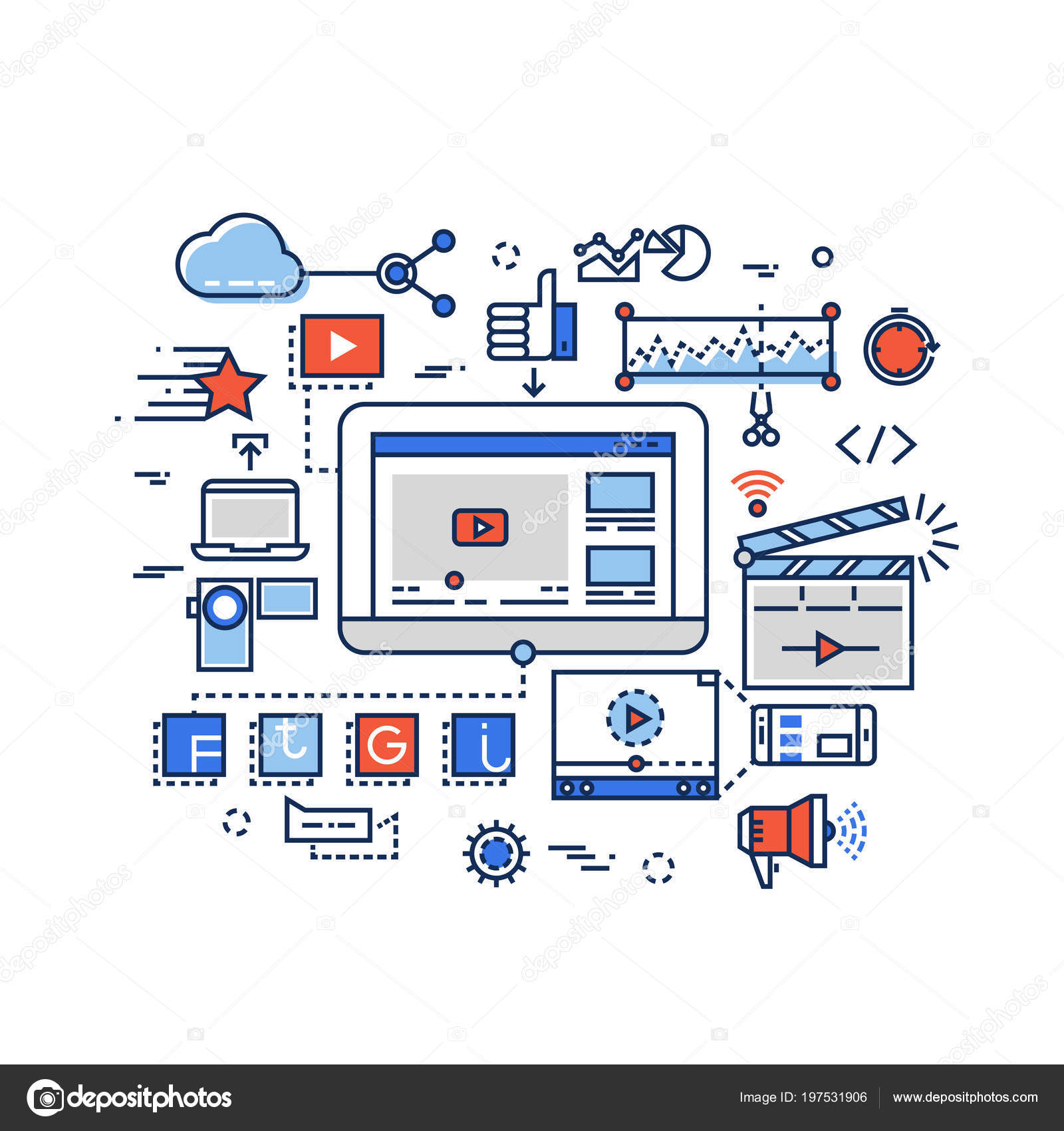 Video Production Media Digital Marketing Clip And Film Making Youtuber Vector Concept With Flat Line Icons Stock Vector Image By C Microone 197531906