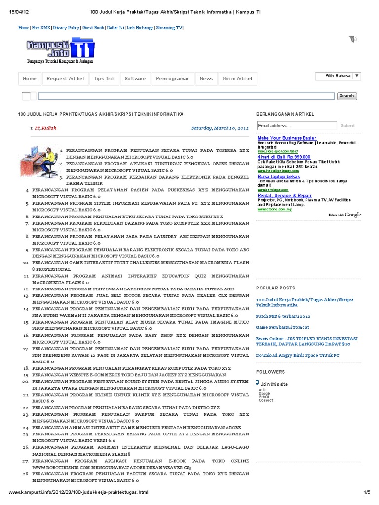 Download 101 Contoh Skripsi Teknik Informatika Pdf Dan Tips Membuat Judul Skripsi Karyatulisku