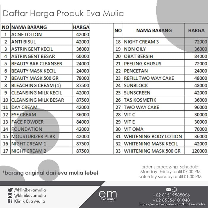 Daftar Harga Paket Jerawat Eva Mulia Bulan November 2021