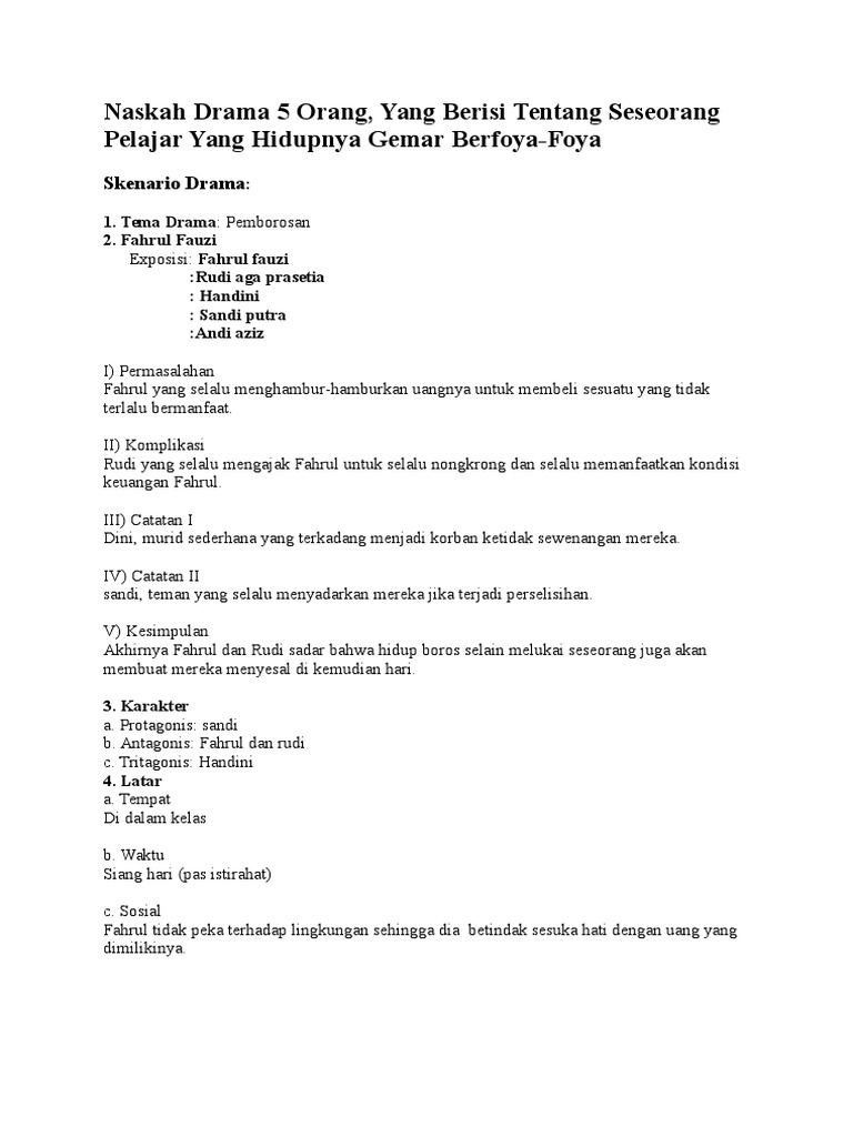 Naskah Drama 4 Orang Pemborosan Docx Document