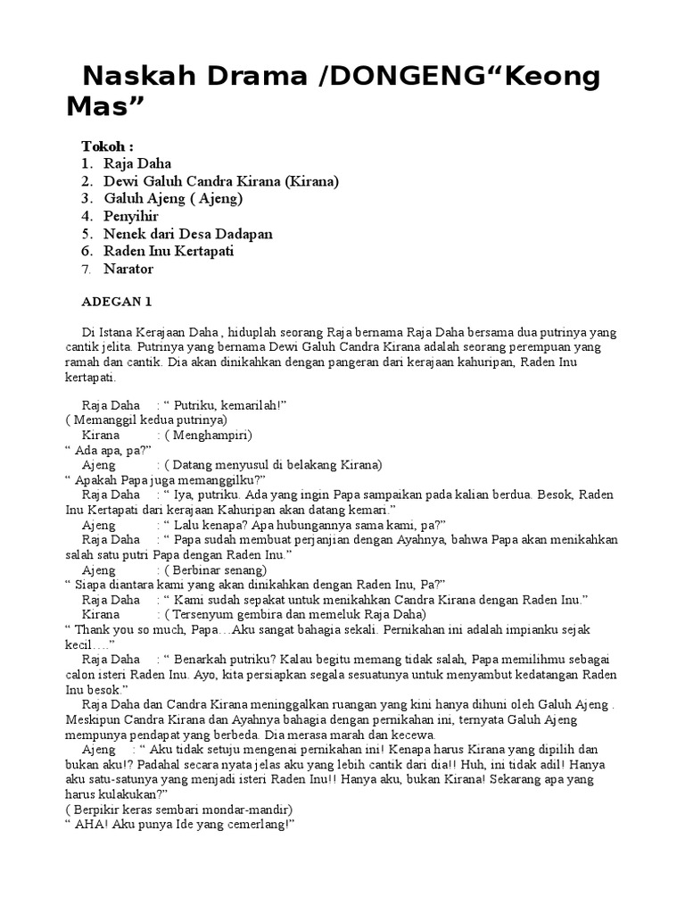 Contoh Naskah Drama Singkat Dimainkan 6 Orang Pdfcoffee Com
