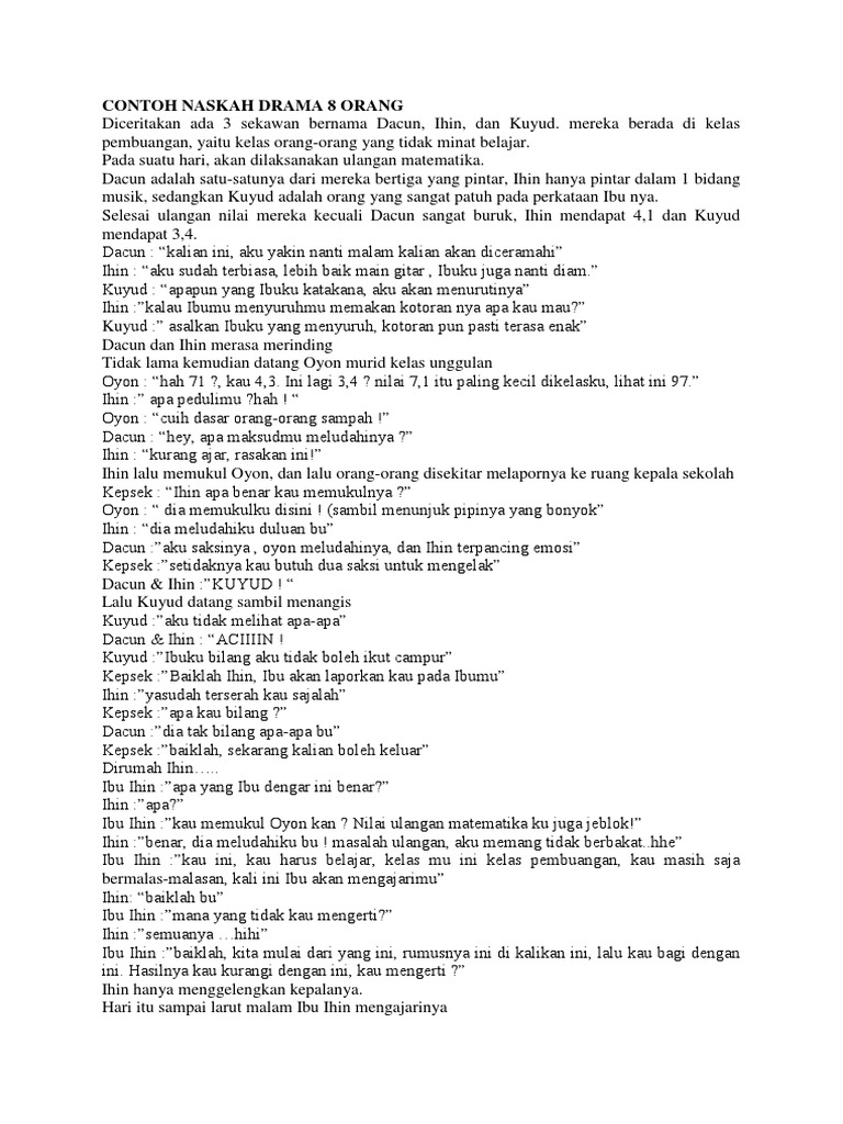 Contoh Naskah Drama 8 Orang Tentang Pendidikan Dan Persahabatan Pdf Txt