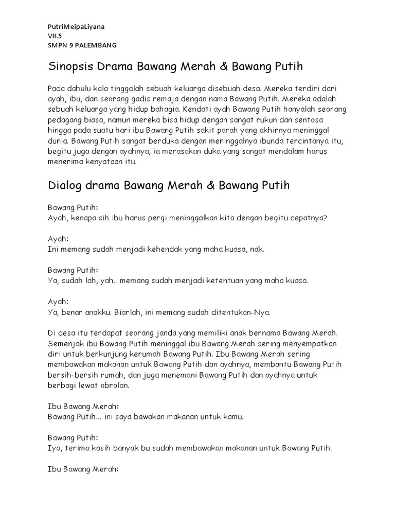Contoh Naskah Drama Bahasa Inggris Bawang Merah Bawang Putih Examples Latihan Soal Bahasa Inggris