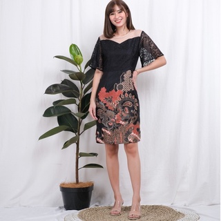 Rr1877 Dress Batik Modern Kombinasi Brokat Kembang Ceplok Arcobaleno Solo Kebaya Di Solo Tribunjualbeli Com