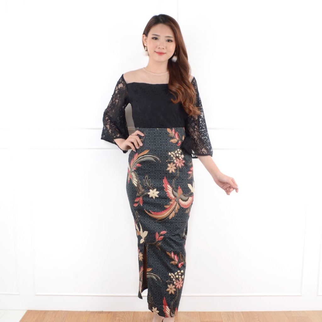 Rr1877 Dress Batik Modern Kombinasi Brokat Kembang Ceplok Arcobaleno Solo Kebaya Di Solo Tribunjualbeli Com