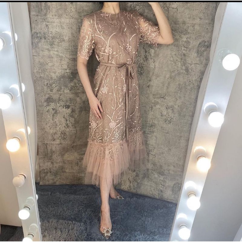 Midi Dress Berbahan Tille Bordir Inner Berbahan Cavali Dress Ini Made By Order Ukuran Warna Dan Bahan Dap Dress Brokat Modern Lace Dress Vintage Dress Brokat
