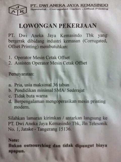 Lowongan Kerja Pt Dwi Aneka Jaya Kemasindo Tbk Jatake Tangerang Keluaran Togel Online Tercepat Hari Ini