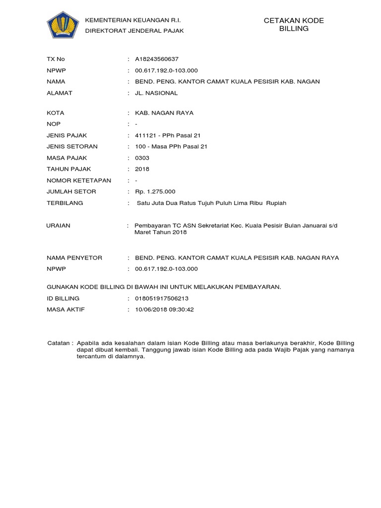 Contoh E Billing Cetakssp Pdf