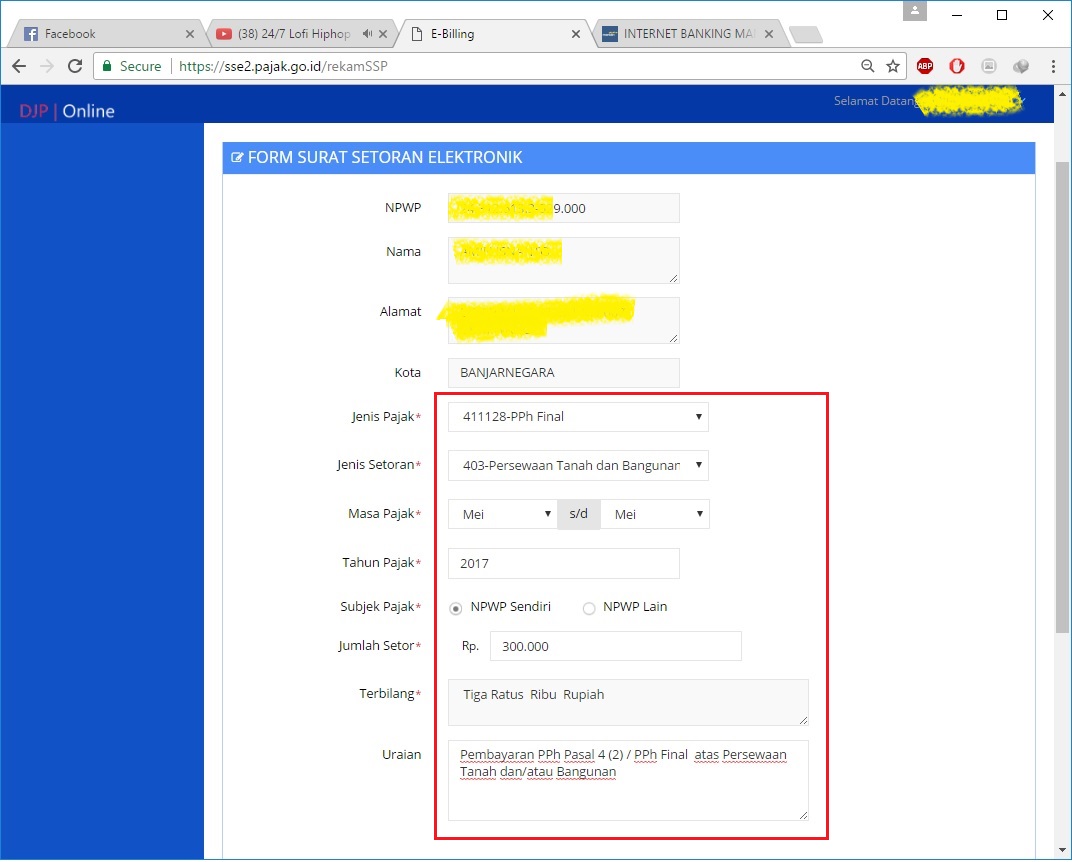 Bayar Membuat Id Billing Pph Atas Sewa Tanah Bangunan Dan Membayar Melalui Internet Banking Mandiri Pajeg