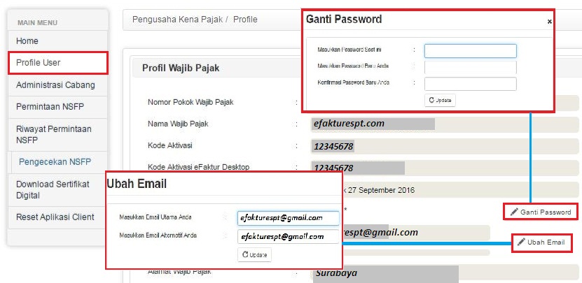 E Nofa Online Direktorat Jenderal Pajak Ganti Password Dan Email Efaktur Dan Espt
