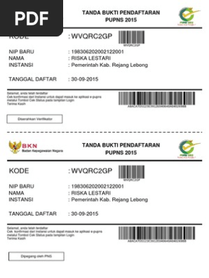 Cara Registrasi Daftar Pupns Bkn Tahun 2015 Dan Contoh Tanda Bukti Pendaftaran Pupns 2015 Sekretariat Daerah