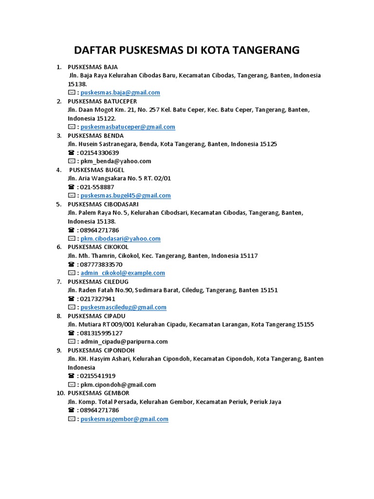 Daftar Seluruh Alamat Puskesmas Di Tangerang Selatan Tangsel Media Portal Informasi Seputar Kota Tangerang Selatan