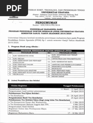 Pengumuman Unud Ac Id Prodi Baru Ppds Pada Alamat Kampus Unud Bukit Jimbaran Badung Program Pendidikan Dokter Spesialis Melakukan Pembayaran Biaya Pendaftaran Di Bank Pdf Document
