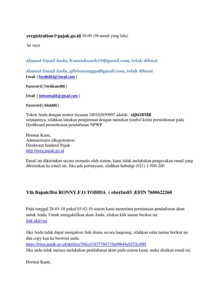 Djp Online Cara Registrasi E Filing Pajak Aktifasi Efin
