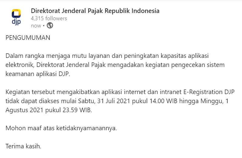 Djp Cek Sistem Keamanan Aplikasi E Registration Tidak Bisa Diakses