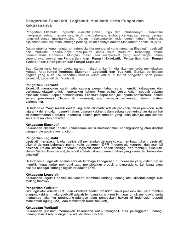 Lembaga Eksekutif Legislatif Dan Yudikatif Pengetahuanku13
