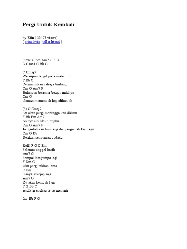 Chord Dan Lirik Lagu Pergi Untuk Kembali Ello Bangkapos Com