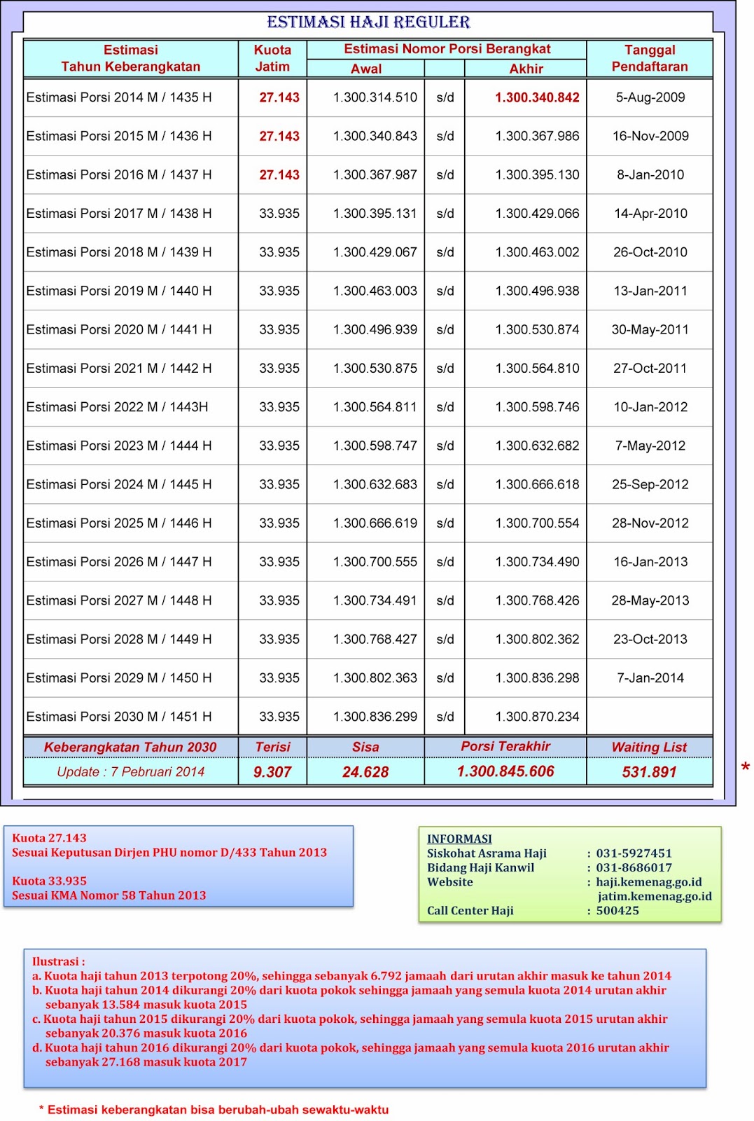 Estimasi Waktu Tunggu Lama Antrian Haji Reguler