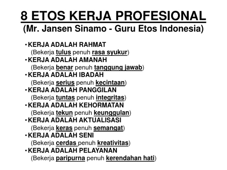 8 Etos Kerja Profesional Jansen H Sinamo Desa Mulyasari