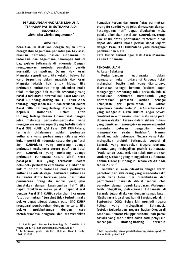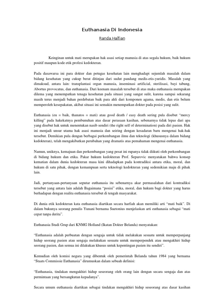 Pdf Euthanasia Dalam Pandangan Etika Secara Agama Islam Medis Dan Aspek Yuridis Di Indonesia