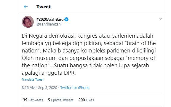 Ciutan Fahri Hamzah Di Twitter Soal Millenial Indonesia Pontas