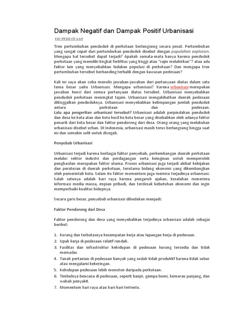 Dampak Negatif Dan Dampak Positif Urbanisasi