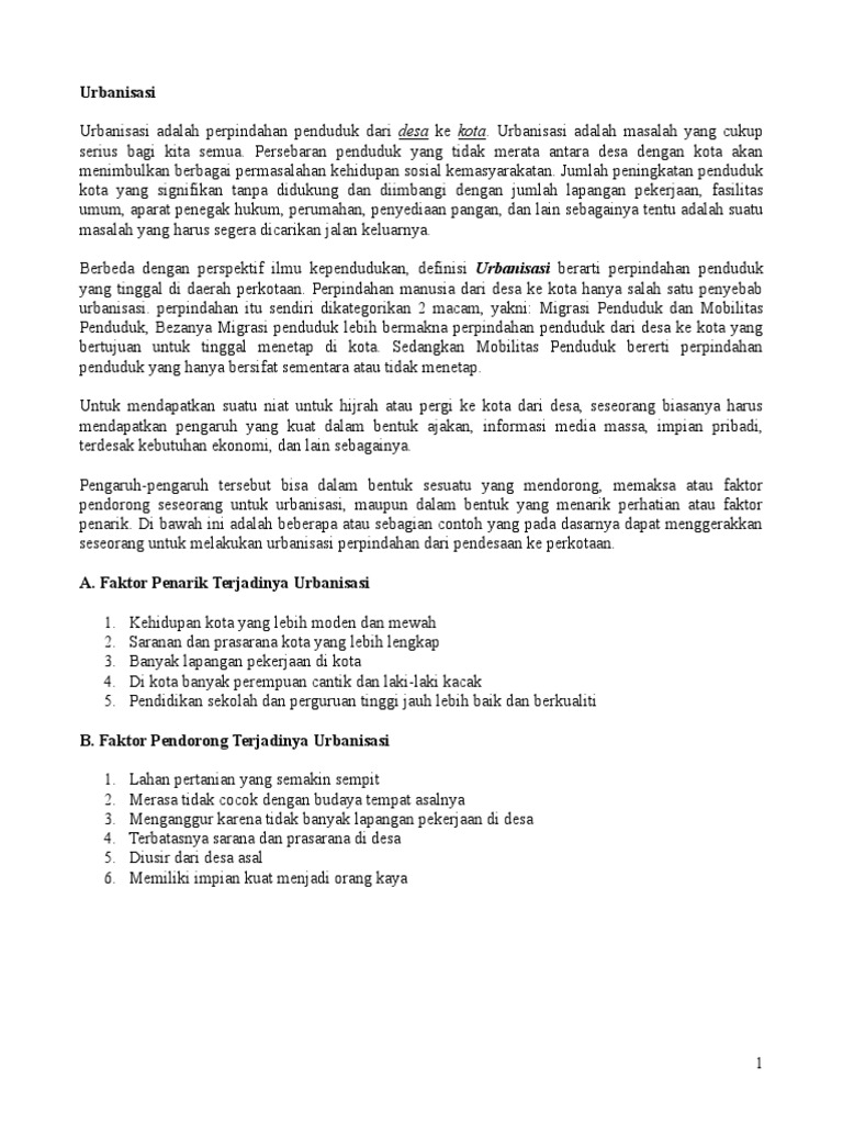 Pdf Faktor Faktor Urbanisasi Di Indonesia