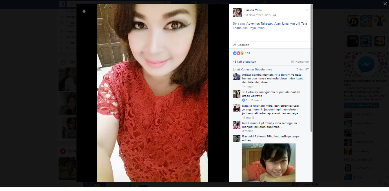 Facebook Farida Yeni Selingkuhan Bupati Katingan Dibanjiri Hujatan Laman 2 Pojoksatu Id